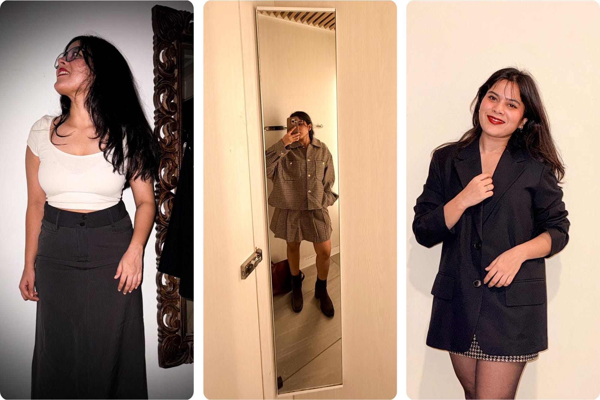 Being the youngest sibling, I had the privilege of sharing a closet with two girls. Naturally, most of my personal style was influenced by my sisters. As we grew up and apart, our shared closet began to shrink. That’s when I found the space to explore my style and build my own wardrobe. Turns out, I didn’t need to change a lot. High-waisted bottoms, bodycon silhouettes, solid color basics, printed statement pieces, have only added structure to my self confidence. It’s not how much you own, but the way you style them.